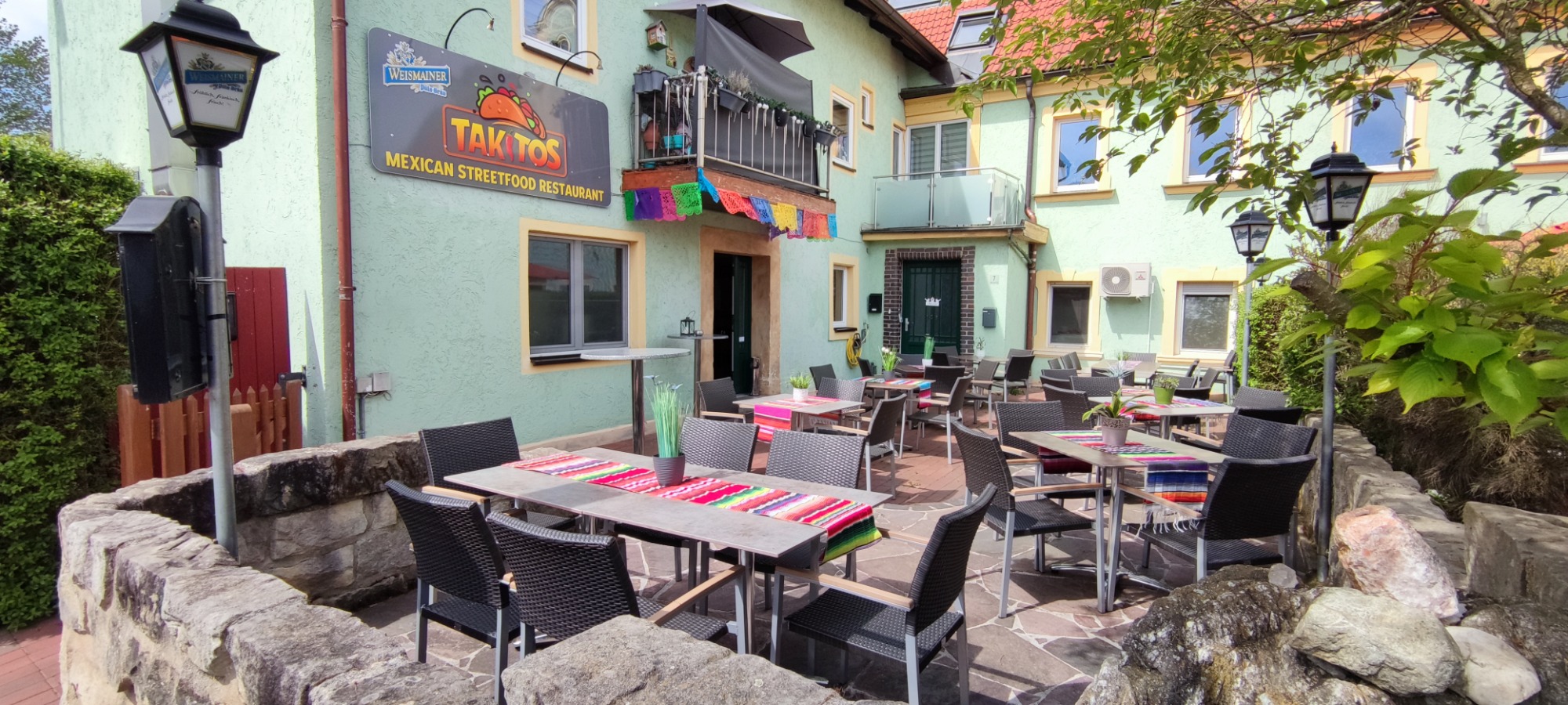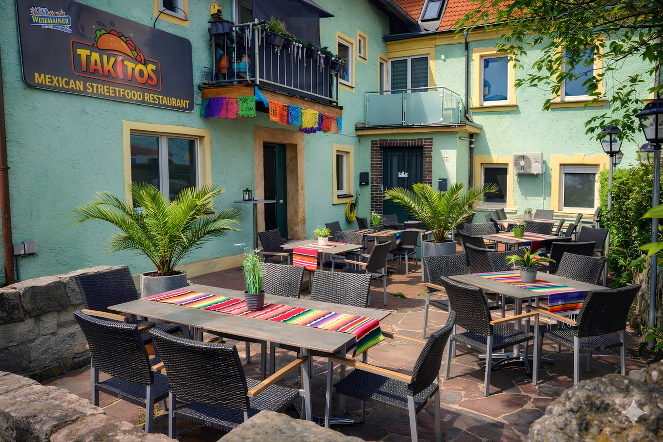Nach unserem Start im kleinen Container ist Takitos heute ein gemütliches Restaurant mit Platz für bis zu 30 Gäste im Innenbereich und 40 auf unserer Terrasse.